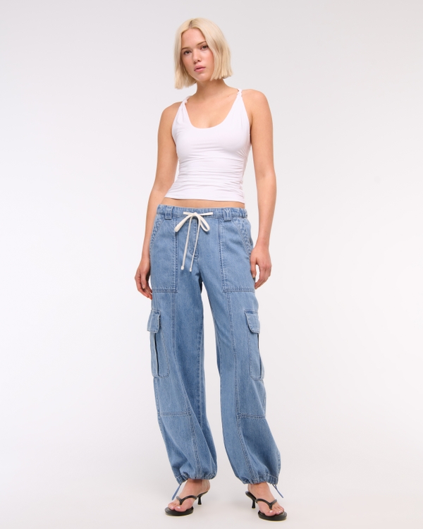 舒適的褲子,採用垂墜斜紋布料和寬鬆的版型,具有工裝風的細節設計、口袋、全鬆緊腰帶,配有可調節腰圍的功能性拉繩,以及可調節下擺繫帶,打造收緊或寬鬆的造型。 進口貨品