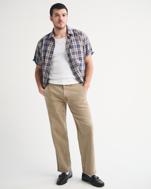 我們的輕便牛仔褲採用寬鬆剪裁和亞麻混紡牛仔麵料。褲腳採用鬆身版型剪裁,腳踝位置則採用直筒版型。褲頭採用褲裝細節設計;另加入啡色洗水、俐落下擺,和腳踝長度內縫細節。若想要較長效果,請選擇較長的內縫長度。 進口貨品