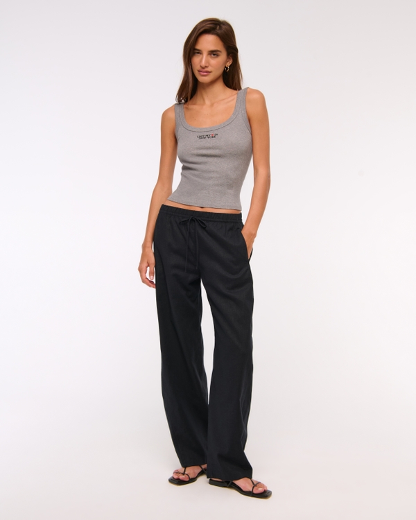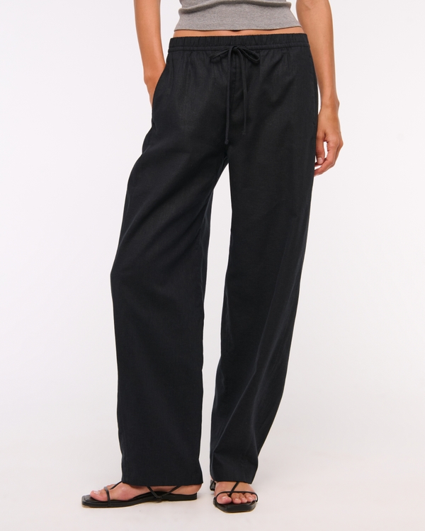 中腰褲採用我們柔軟的亞麻混紡面料製成,腰部和臀部寬鬆,大腿和小腿寬鬆,逐漸變細成桶狀腿形。附有實用口袋和套穿式鬆緊腰帶,並配有抽繩細節,舒適且可調節。 進口貨品