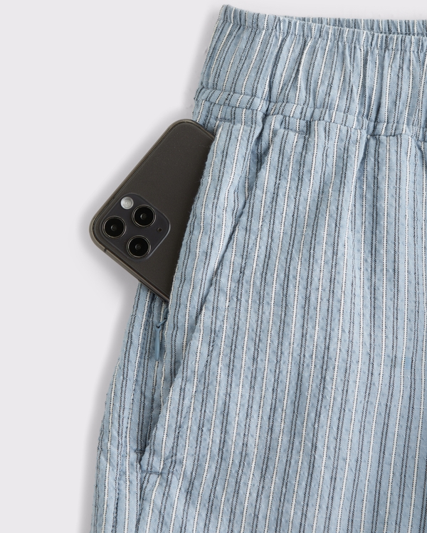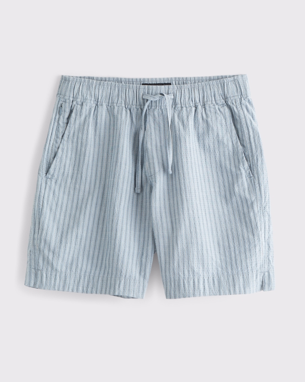 這款舒適的 8 吋 (20 厘米) 拉穿式短褲以輕盈透氣的泡泡紗布料製成,並採用休閒款版型剪裁。具有彈性抽繩褲頭,多處設有口袋,並配有隱藏式手機拉鍊口袋。 進口貨品