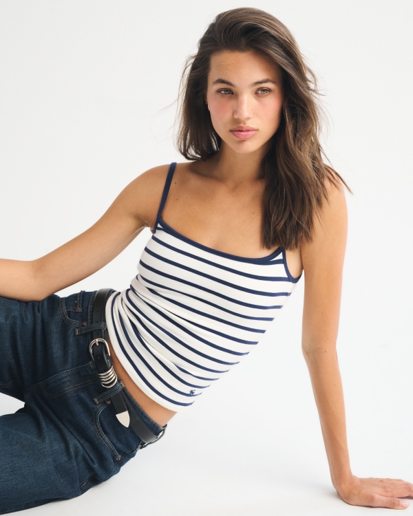 Our new collection built to make going bra-free that much smoother. This slim-fitting 90's-style top is in our softAF cotton-blend seamless fabric. Features an embroidered icon detail, removable pads for added coverage and a square neckline. Our cotton-blend seamless fabric is an ultra soft, brushed jersey fabric, that gives you a casual seamless look. Imported.
