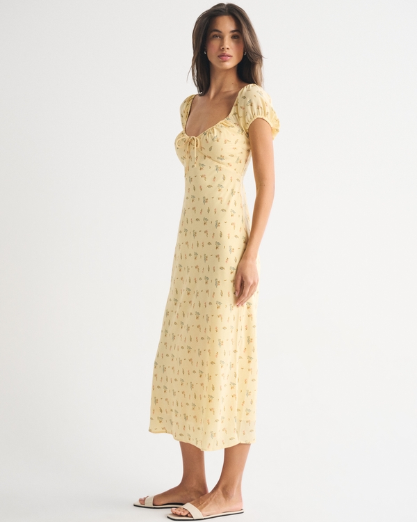 BH-freies Midikleid mit kurzen Puffärmeln und Sweetheart-Ausschnitt