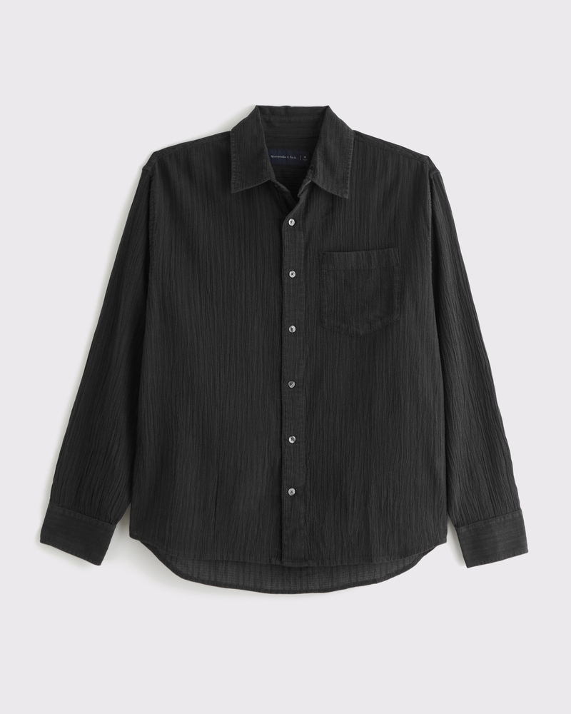 Stückgefärbtes, strukturiertes Hemd mit Knopfverschluss