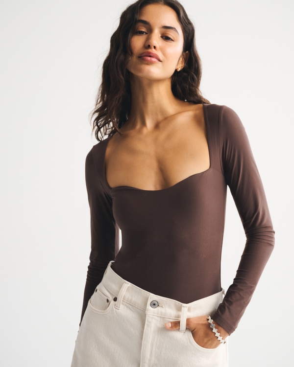 Body de manga larga sin costuras con escote corazón y de tejido mate suave