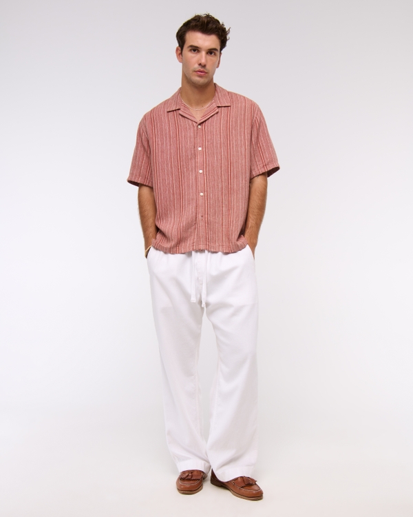 Camicia estiva in misto lino con colletto cubano
