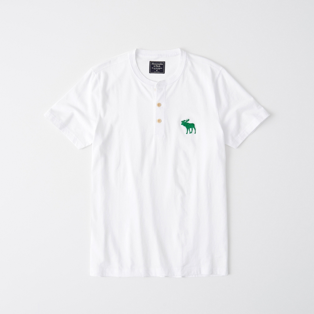 A staple in a lightweight fabric, featuring exploded icon at left chest and a classic three-button henley placket. Imported