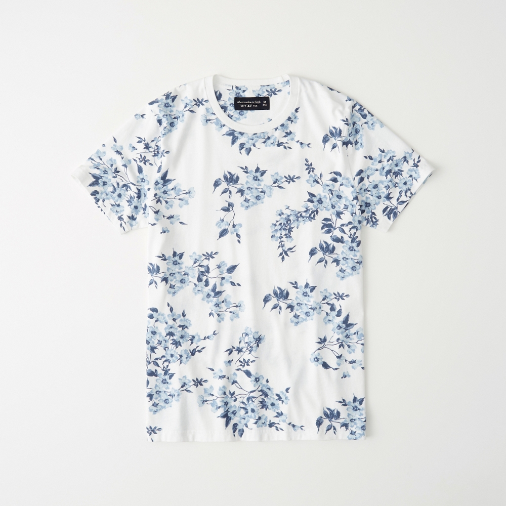 Short-sleeve cotton tee in slim fit with all-over floral pattern. Short sleeves, crew neckline and straight hem. Imported