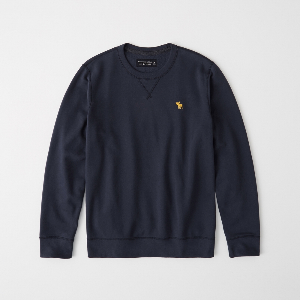 Versatile crewneck sweatshirt in soft, lightweight fleece fabric with embroidered icon detail at left chest and straight hem. Imported