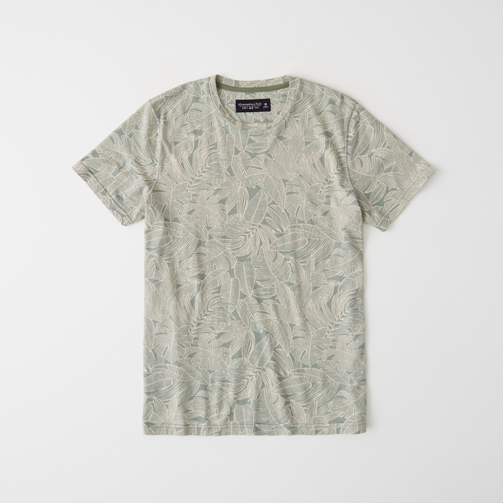 Slim-fitting crew tee in all-over patterned design and cool cotton fabric. Short sleeves and straight hem. Imported
