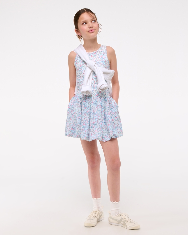 Versatile mini dress in our active fabric, featuring a scoop neckline and on-trend bubble hem. Imported.