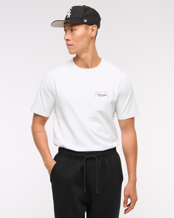 Our new short-sleeve tee in our softAF 212g fabric and new tailored back classic fit, with a biopolish finish, that creates a clean and crisp feel to the touch. Features holiday-inspired print graphic logo detail at left chest, crew neckline and straight hem. Imported.