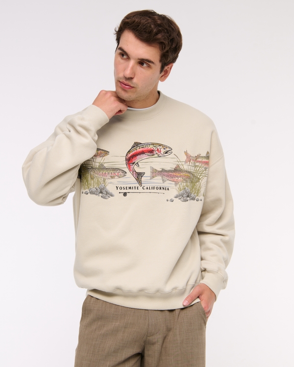 Classic sweatshirt in our softAF fleece fabric and oversized-fit silhouette, featuring vintage fishing-inspired graphic detail at chest, crew neckline and banded hem and cuffs. Imported.