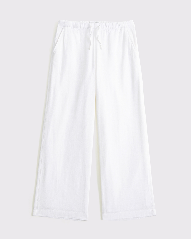 Our new high rise pants in our soft linen-blend fabric and ultra wide-leg silhouette, with a full-length leg, interior lining, functional pockets and a pull-on style waistband. Imported.