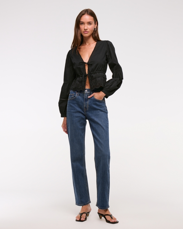 Our classic fit denim is measured straight through the hip, thigh, and waist.