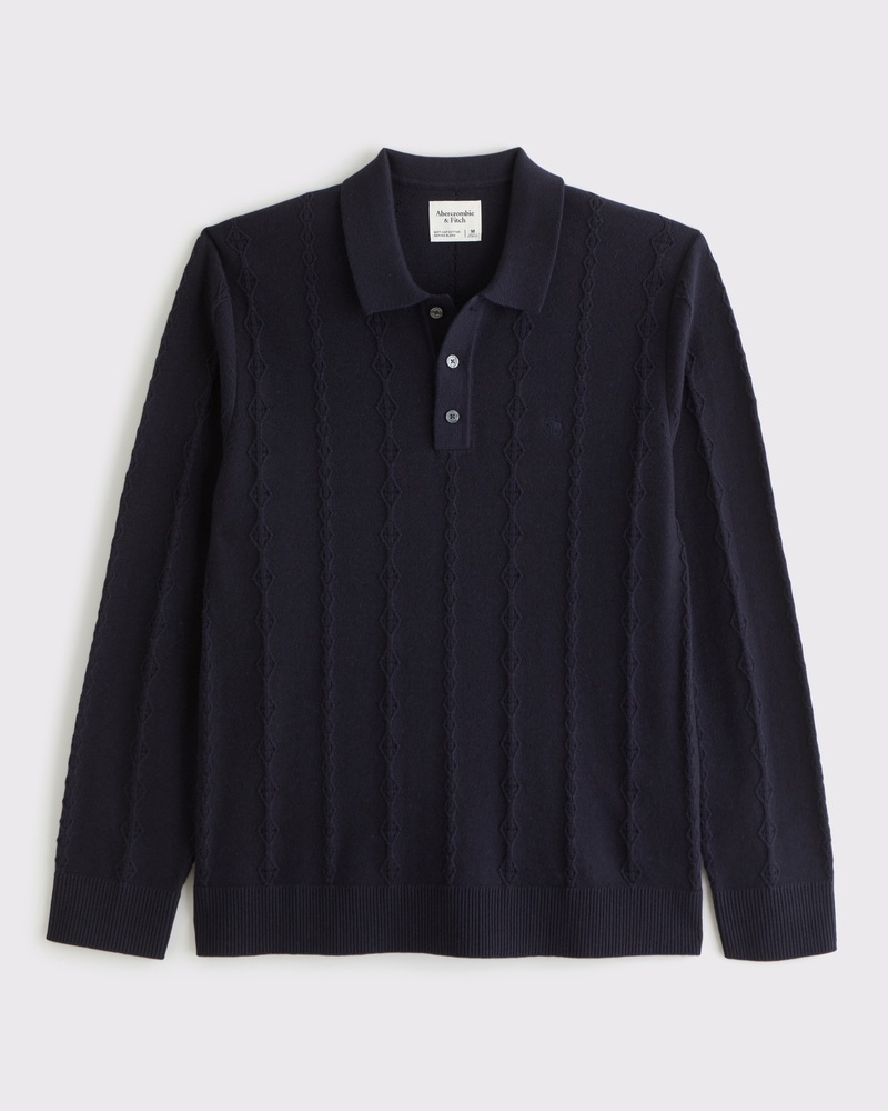 Comfortable long-sleeve sweater polo in a soft sweater-knit fabric and standard-fit silhouette, featuring 3-button placket, classic stitching details throughout, embroidered icon at left chest and banded hem and cuffs. Imported.