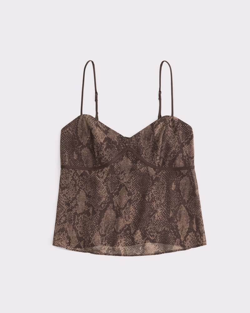 Flattering top in our ultra sheer crepe fabric and babydoll silhouette, featuring a sheer bodice, interior lining at the bust, sweetheart neckline and adjustable cami straps. Imported.