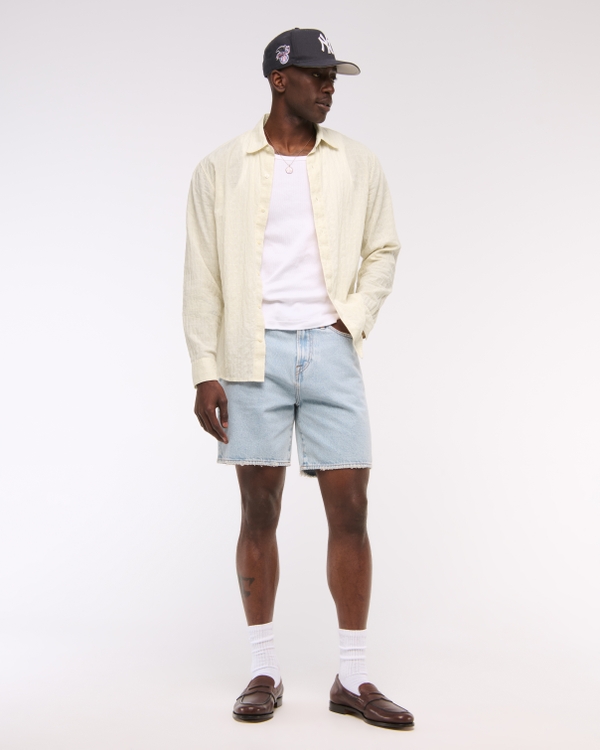 Long-sleeve button-up shirt in our new lightweight textural fabric, that's breathable and perfect for hot sunny days. Features a relaxed-fit silhouette, classic button-down collar and straight hem. Imported.