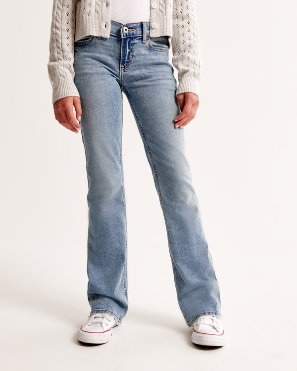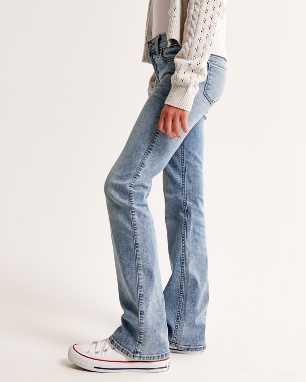 Our new low rise bootcut jeans with Y2K-inspired details, medium wash, functional pockets and waistband adjusters in all sizes. Imported.