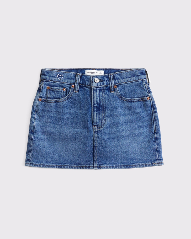 Embroidered Mid Rise 5-Pocket Denim Mini Skirt