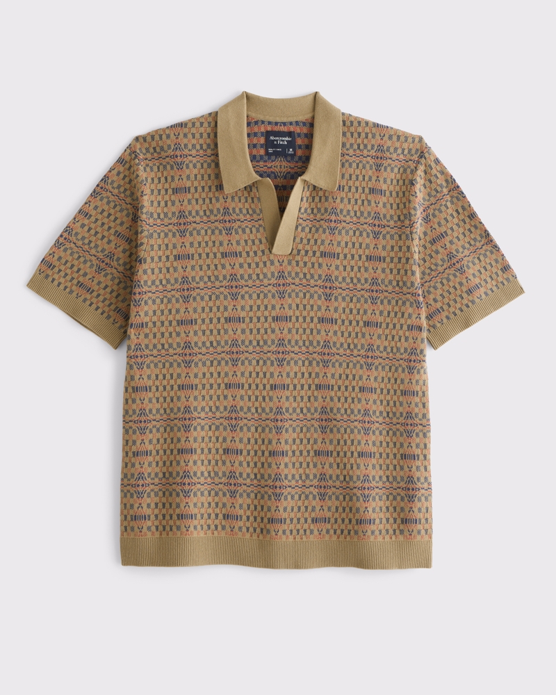Textile-Inspired Johnny Collar Sweater Polo