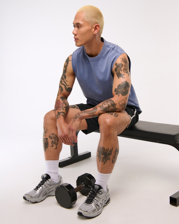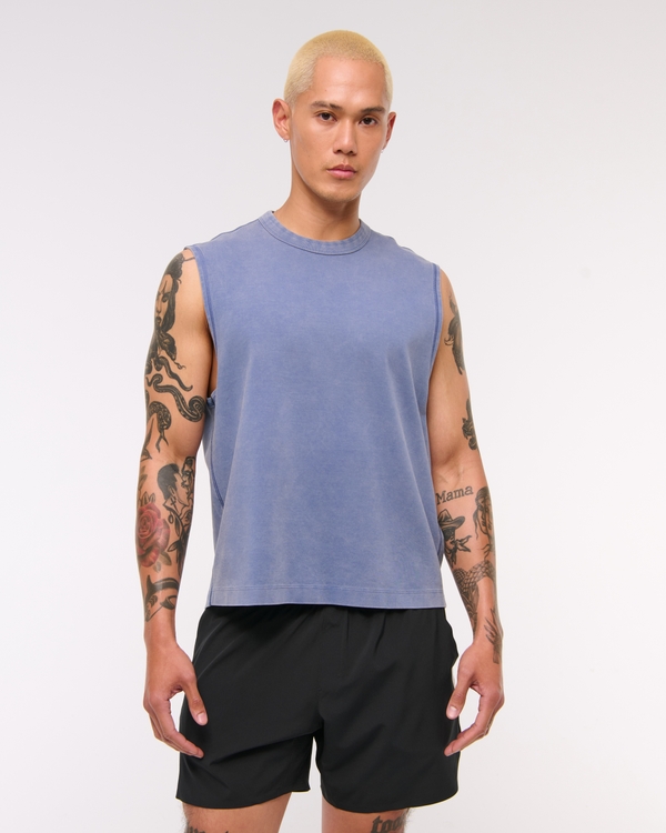 Easy-fitting active tank in our heavyweight 100% cotton fabric, that's super soft. Features a cropped length, relaxed-fit silhouette, shoulder seaming details for extra mobility and a flattering look and crew neckline. Perfect for lifting or casual wear! Imported.