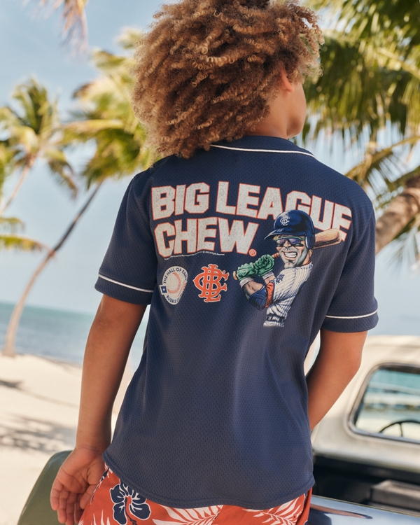 Top tejido de tendencia con parte frontal abotonada y dobladillo curvo. Incluye estampa de Big League Chew en el pecho izquierdo y en la espalda. Artículo importado.