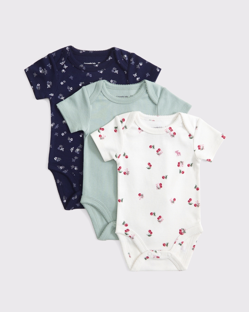 3-pack of our comfy short-sleeve bodysuit in our soft cotton-blend fabric. Features an embroidered icon at the left chest and a three-snap bottom closure. Imported.