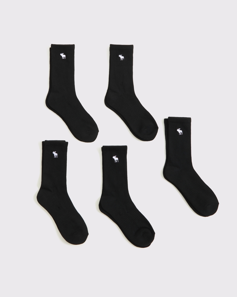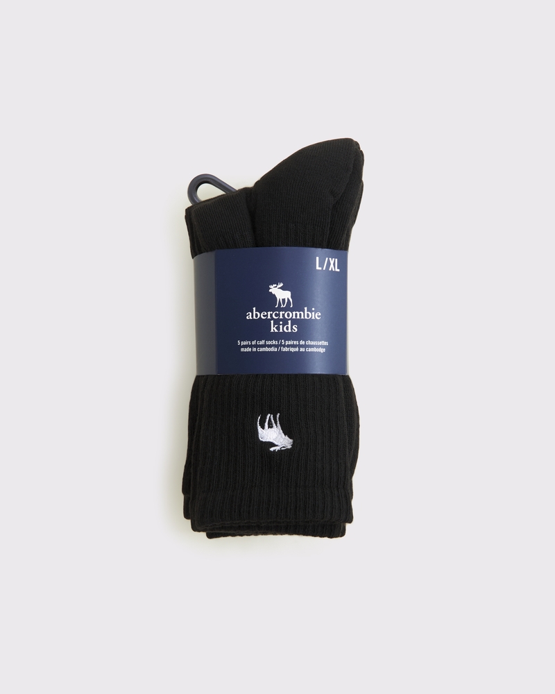 5-pack of comfy calf socks in a wear-with-everything color with embroidered icon detail. Size S/M socks are designed to fit US shoe size 10-1 and Size L/XL socks are designed to fit US shoe size 2-6. Imported.