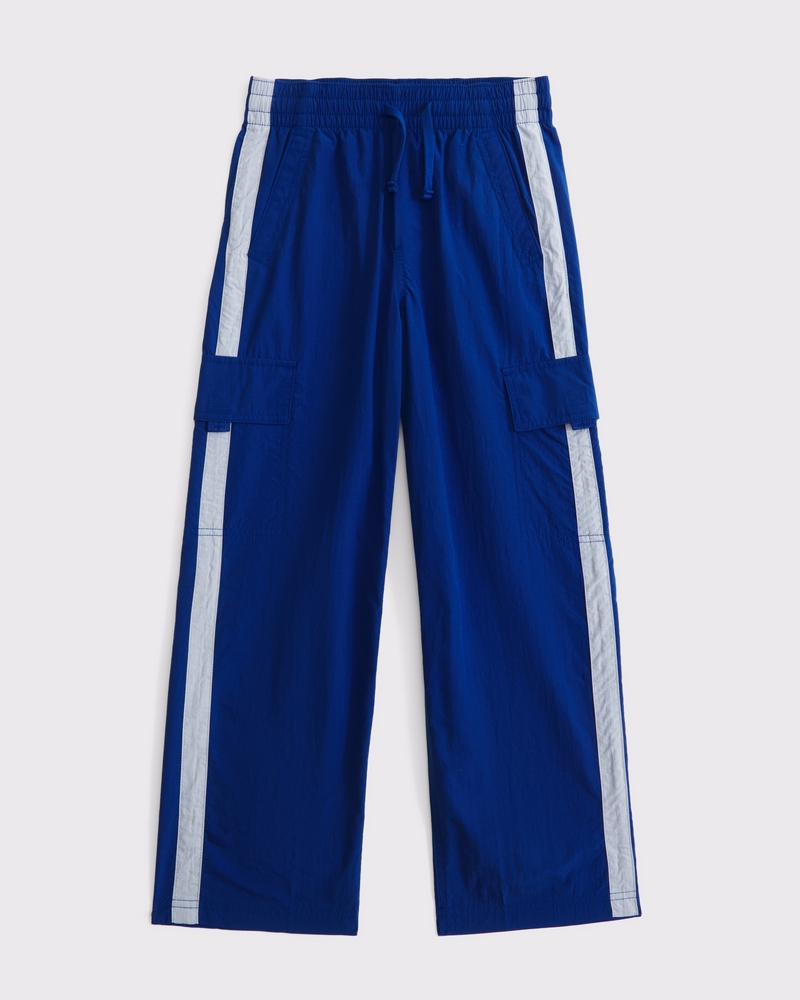 Comfortable pull-on style pants in a crinkle nylon fabric, with a baggy fit through the leg. Features on-trend cargo-style pockets, elasticated waistband, pockets and exterior drawcords. Imported.