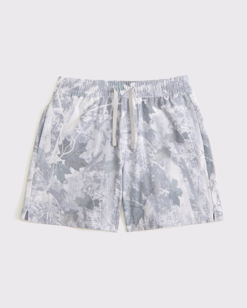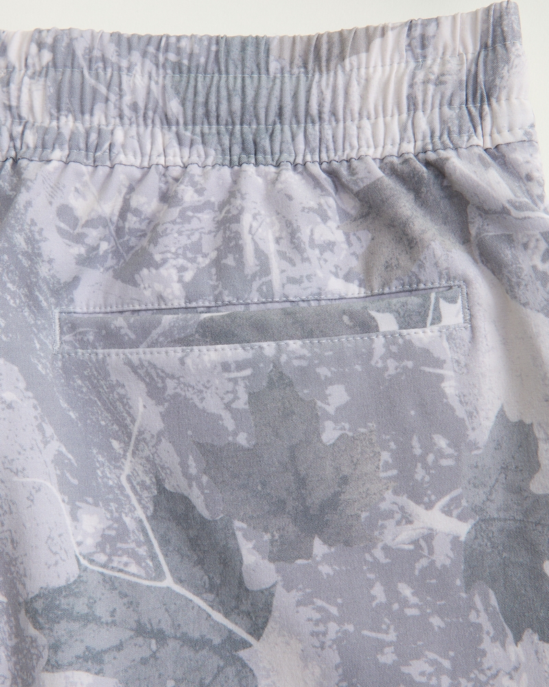 Our new mid-thigh length shorts in our hybrid fabric, with moisture-wicking and breathable properties, with the added bonus that you can swim in them! Features on-trend camo pattern, drawstring waist and pockets. Imported.