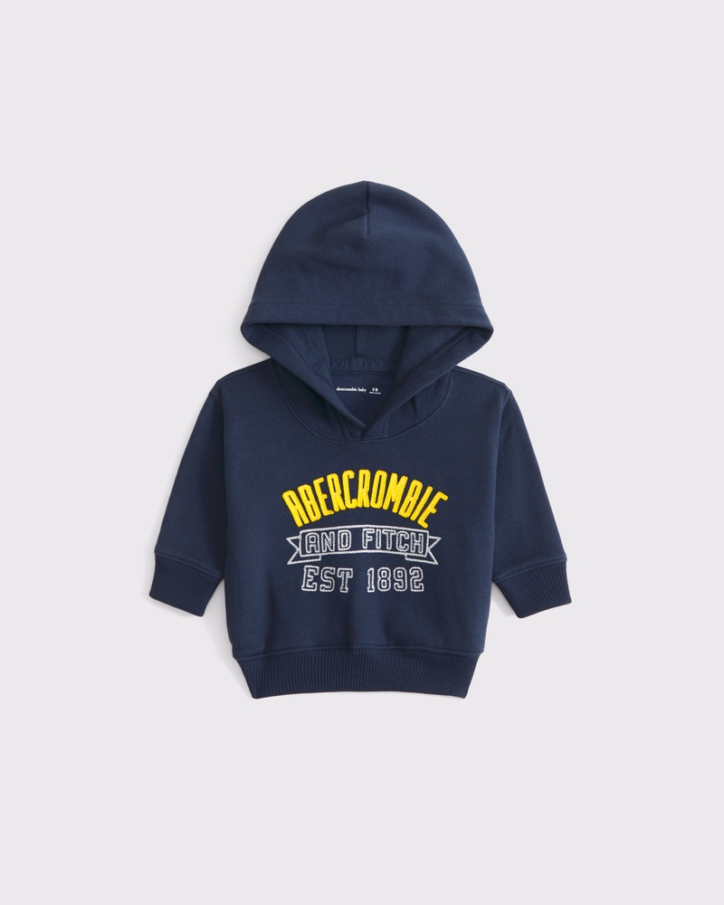 Comfy popover hoodie in our soft fleece fabric. Features an embroidered logo detail at the chest and a banded hem and cuffs. Imported.