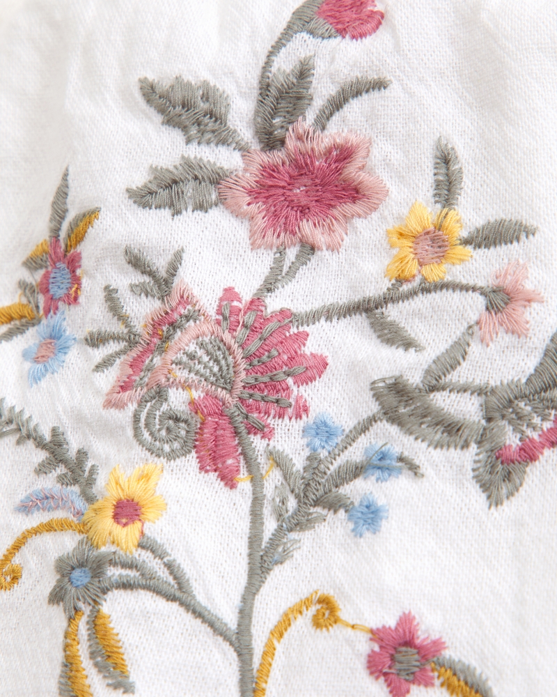 Our cute set in a super soft woven fabric. This tank features floral embroidered and ruching details along the bodice, a square neckline and adjustable straps. These pull-on style pants feature an elasticated drawstring waistband, floral embroidered details at the hem and a front pocket. Imported.