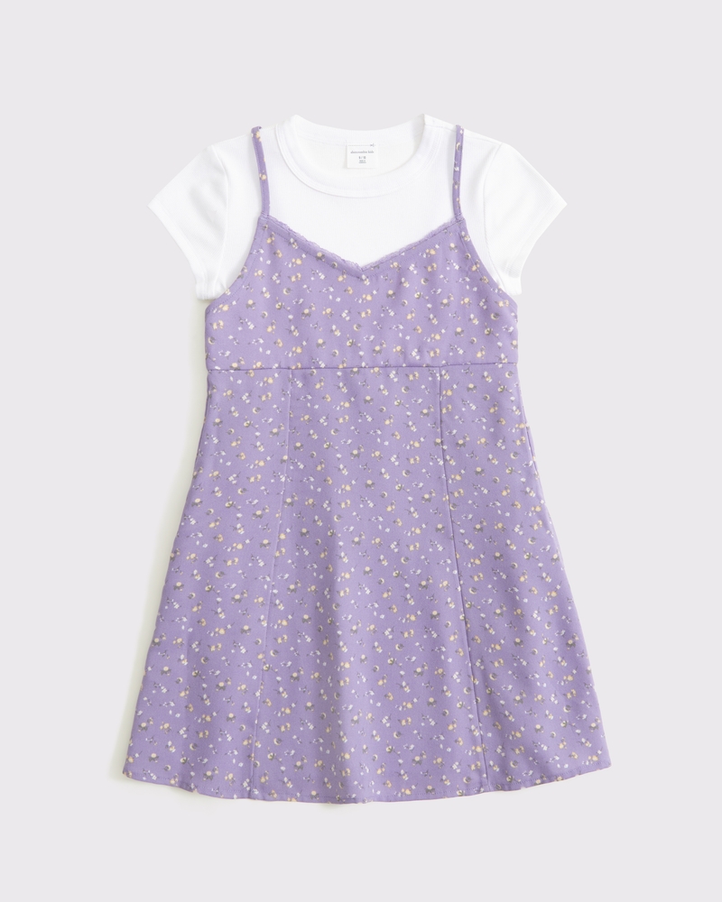 Easy-fitting short-sleeve twofer mini dress in our soft cotton-blend fabric. Features a babydoll silhouette, crew neckline and adjustable straps. Imported.