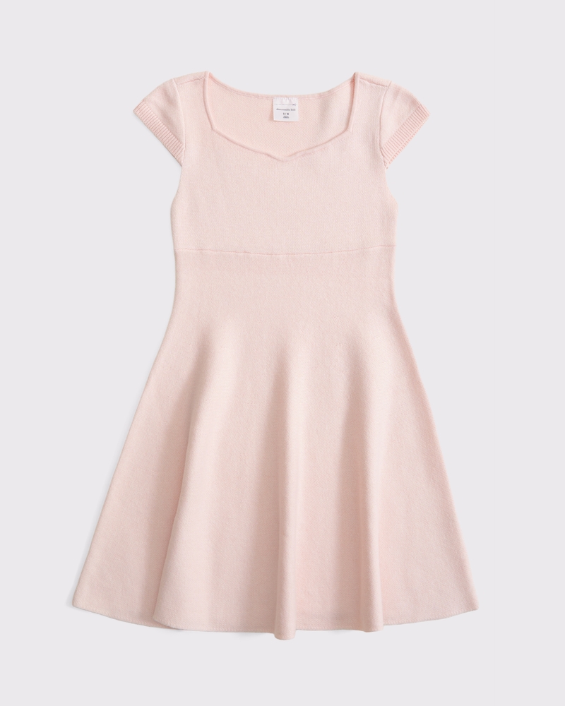 Comfortable short-sleeve mini sweater dress in our soft sweater-knit fabric, featuring pleating details, a sweetheart neckline and flattering cap sleeves. Imported.