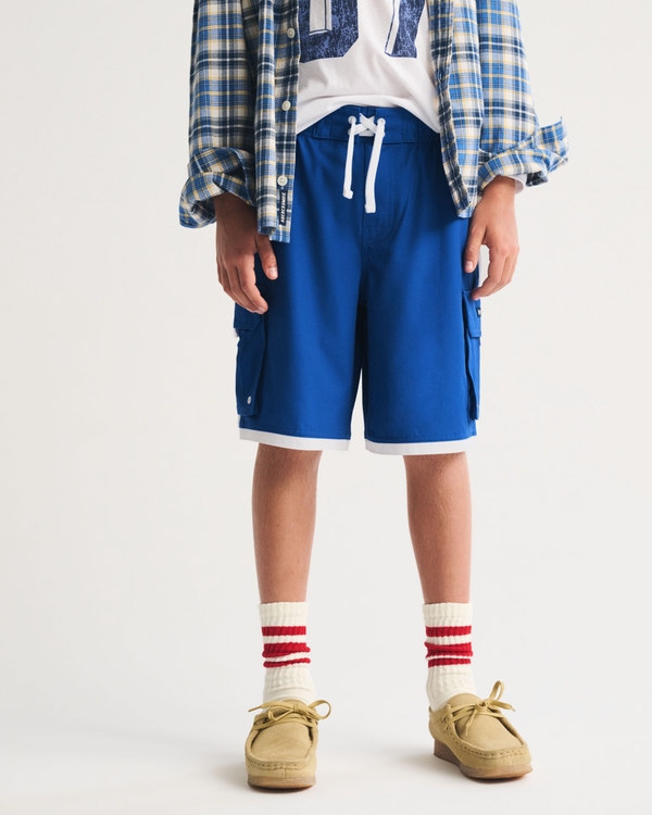 Our versatile at-the-knee boardshorts in our new and improved quick-dry fabric with 4-way stretch and water-repellent properties. Features Y2K-inspired cargo pockets, interior athletic liner for maximum comfort and exterior adjustable drawstrings. Thoroughly tested to ensure long-lasting wear—in both pool and ocean water and wash after wash. Imported.