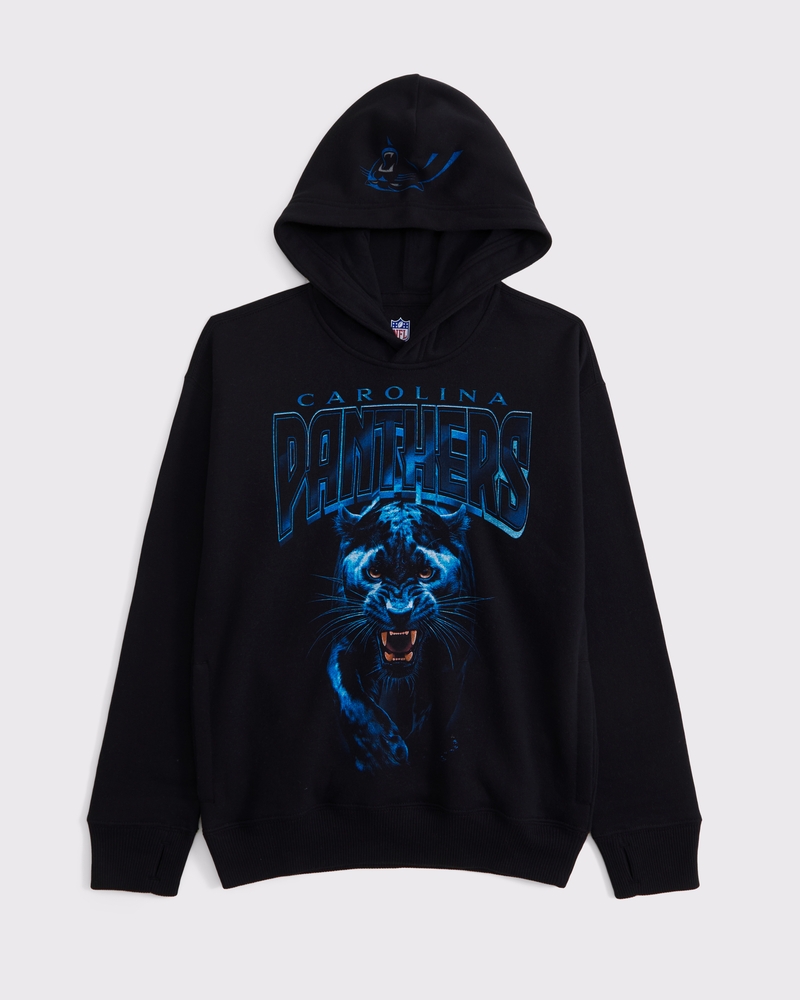 Comfy popover hoodie in our soft fleece fabric, featuring Carolina Panthers-inspired graphic detail at chest, front pouch pocket, ribbed hem and thumbholes at cuffs. Imported.