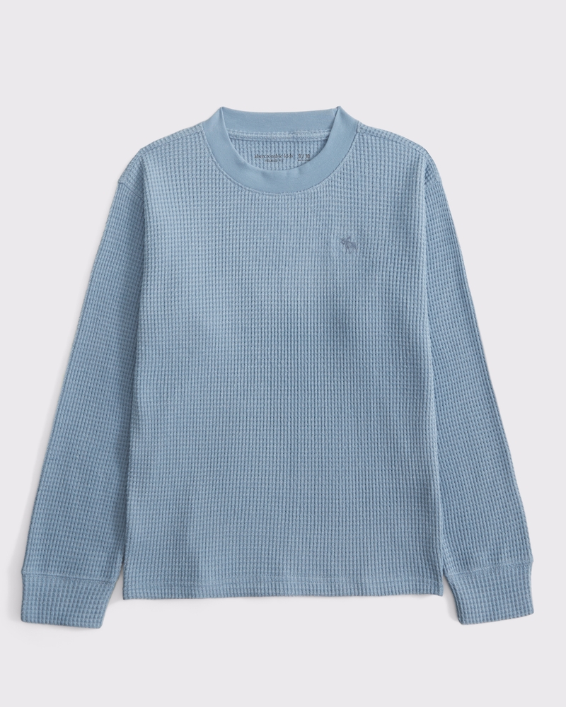 Cozy long-sleeve tee in our soft waffle fabric and relaxed-fit silhouette. Features all-over waffle texture detail, crew neckline and embroidered icon at left chest. Imported.