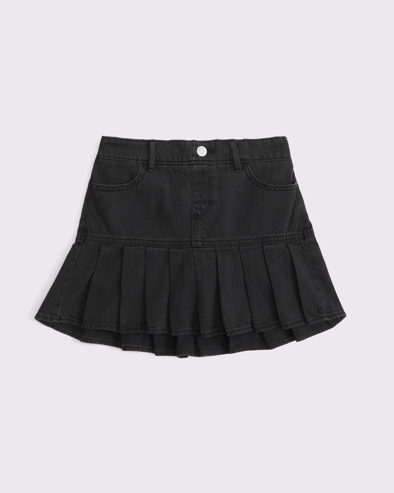 Our new high rise mini skort in a soft denim fabric, with on-trend pleating details, built-in shorts and elasticated waistband for maximum comfort and style. Imported.