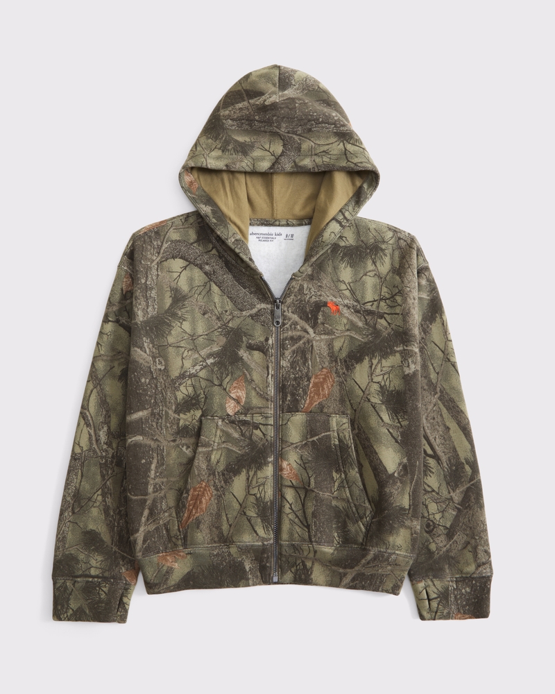Comfy full-zip hoodie in a soft fleece fabric with embroidered icon at left chest, zip-up front, side pockets, banded hem and thumbholes at cuffs. Imported.