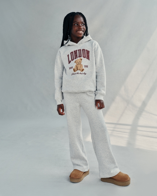 High rise wide leg sweatpants in our super soft fleece fabric, featuring small logo detail, drawstring waist and side pockets. Imported.