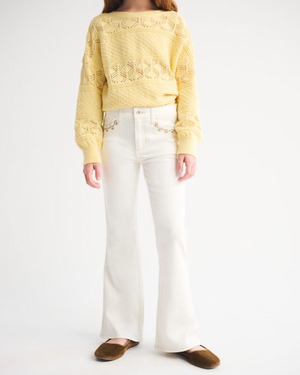 Lay a pair of jeans flat, measure straight across the leg opening & then double that measurement.