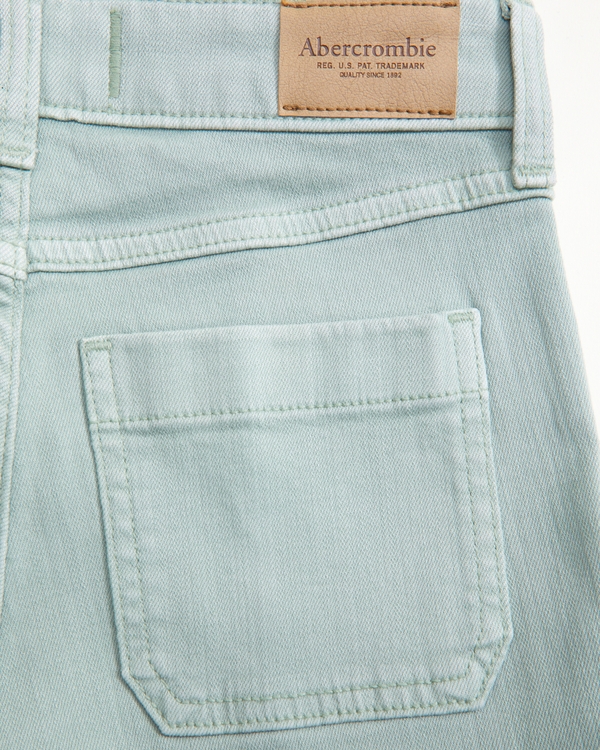 Our new high rise jeans in a wide-leg silhouette with a full-length leg, light green wash with cargo pockets, functional pockets and waistband adjusters in all sizes. Imported.