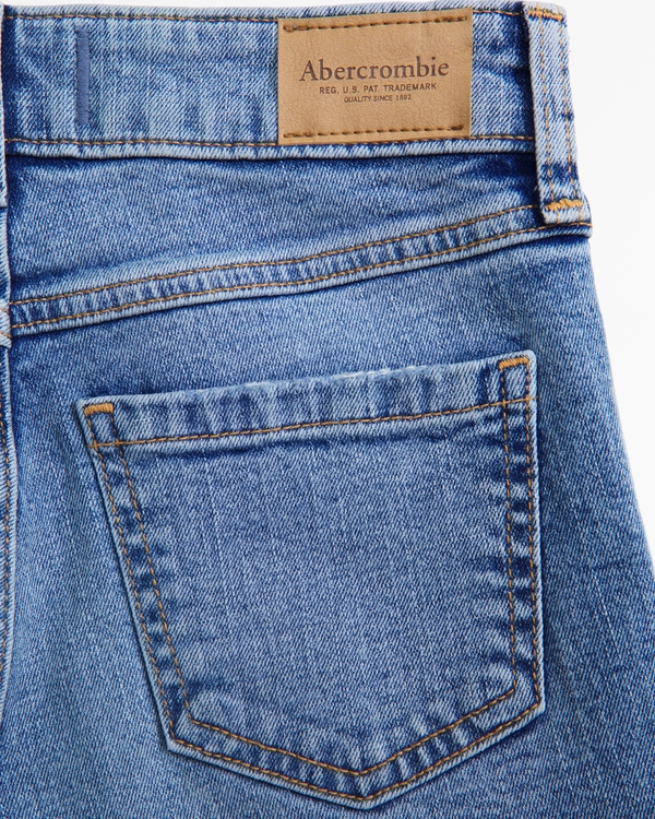 Our high rise wide leg jeans in a medium wash, with trendy cuffed hem, functional pockets and waistband adjusters in all sizes. Imported.