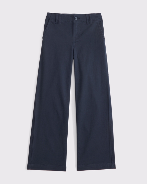 Comfy high rise pants in a soft twill fabric and wide-leg silhouette, featuring side slash pockets and double belt loop detail. Imported.