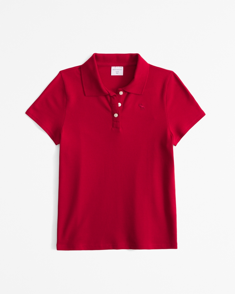 Comfy short-sleeve polo in our soft cotton-blend fabric and short length, that covers the waistband and hits slightly above the hips, with classic polo collar, embroidered icon detail at left chest and three-button placket. Imported.