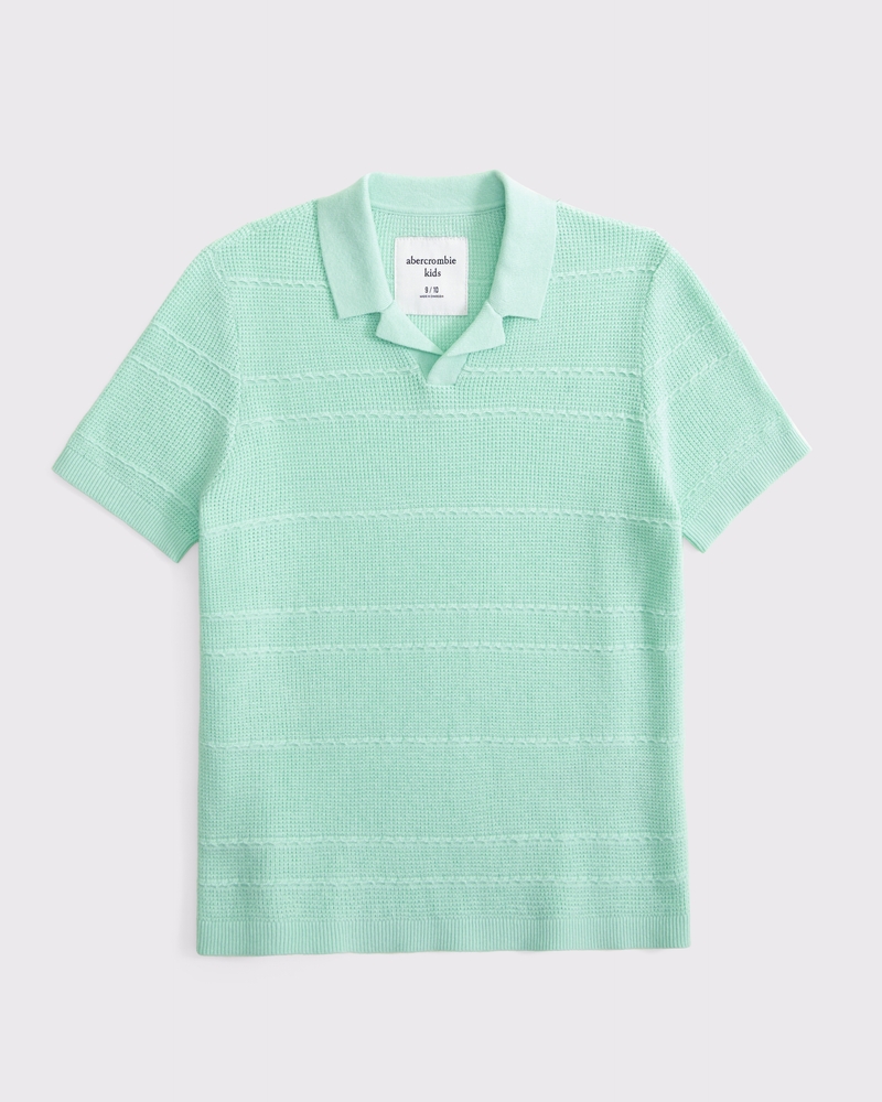 Comfortable short-sleeve sweater polo in a soft knit fabric. Features a no-button Johnny collar and a banded hem and cuffs. Imported.