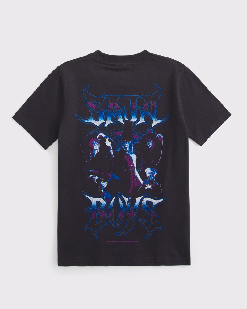 Comfortable short-sleeve tee in a soft cotton-blend fabric. Features K-Pop Demon Hunters Saja Boys inspired-graphic details at the left chest and back and a crew neckline. Imported.