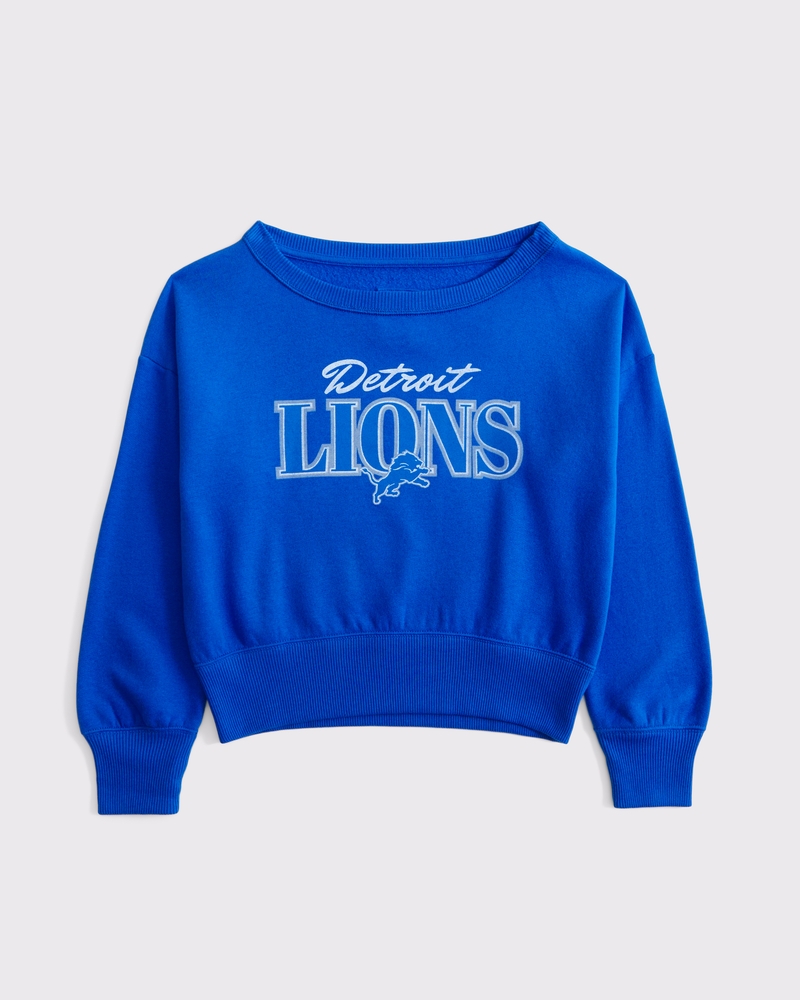 detroit lions off-the-shoulder graphic crew sweatshirt