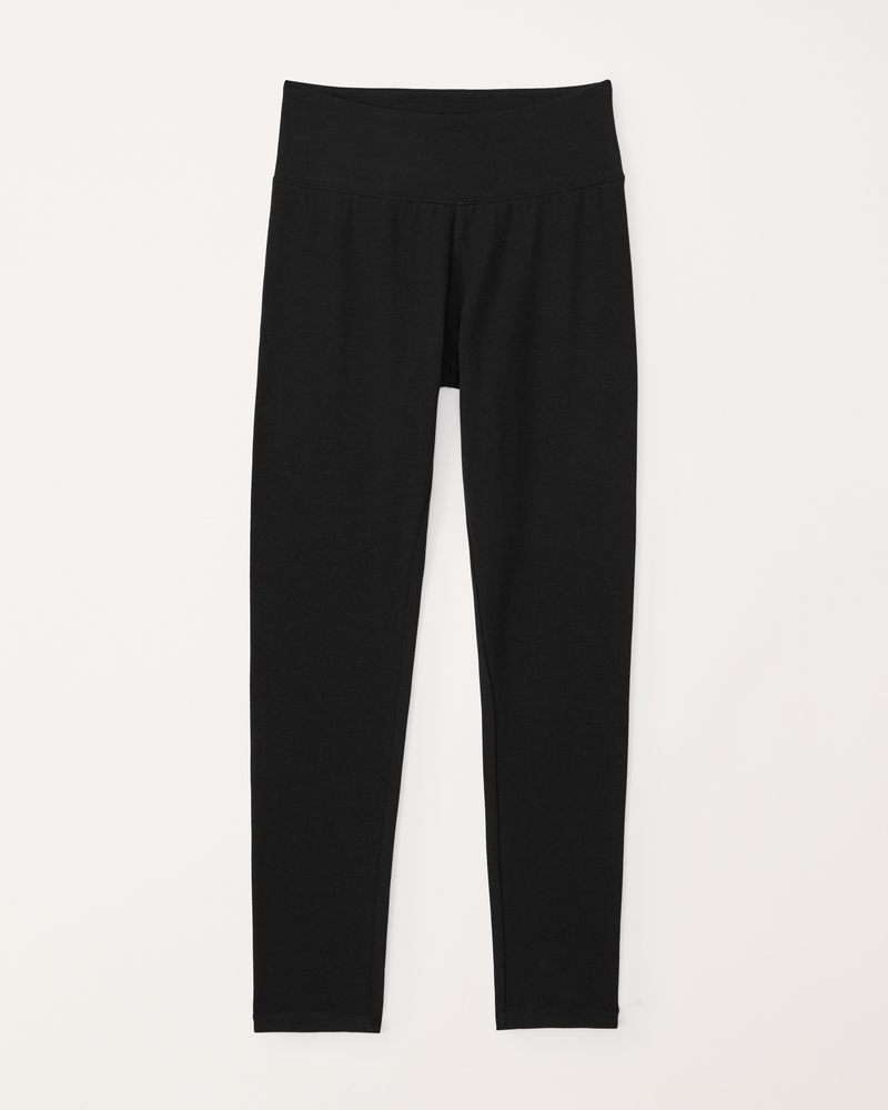Comfy, wear-every-day high rise leggings in our comfy knit fabric, with wide elasticated waistband and logo detail at back. Imported.
