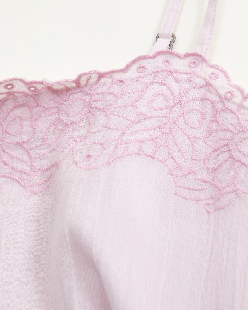 Flattering maxi dress in our soft cotton fabric. Features lace-trim details at the square neckline and adjustable straps. Imported.